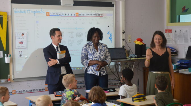 Vendredi 19 septembre, le Maire, Jean Delalandre, accompagné de Madame Mame Bigué Thébault adjointe et des membres de la commission Affaires scolaires et Jeunesse ont rendu visite aux élèves des écoles maternelle et élémentaire en passant dans quelques classes afin de leur remettre le guide scolaire pour l’année2025/2026.