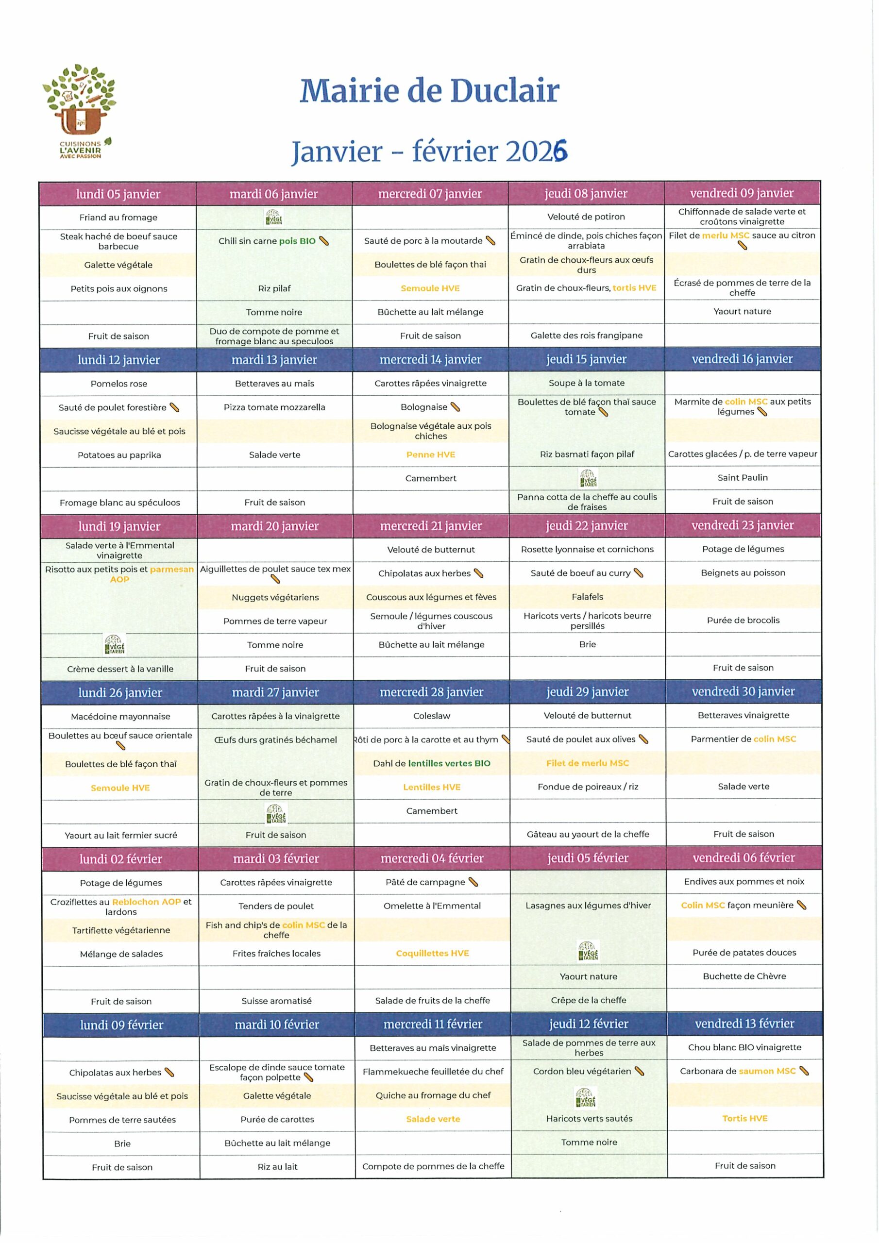 Consultez le mini-site « soyons complices à table », de notre prestataire API RESTAURATION. L’occasion d’y découvrir les producteurs locaux et leurs produits, les infos de notre région, une recette mensuelle, ainsi que des informations sur la nutrition.
